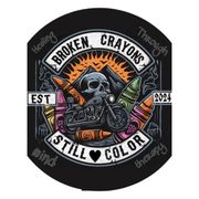 Since the Broken Crayons is not a club, but rather a movement, we wanted to be able to get our 12" logo patch onto other riders vests that may already have a back patch. Estable Punch was able to recreate our 12" patch into a 2.75" hat/chest patch